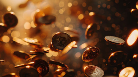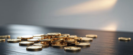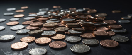 AI Generated. Background Scatter of Coins on a Dark Surface
