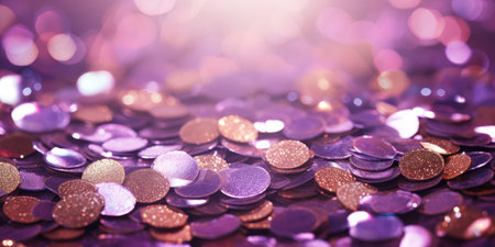 AI Generated. Sparkling Glitter abstract background dark purple saturated color ,de-focused, macro Sequins fall and sparkle, round bokeh