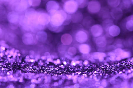 Abstract composition. Blurred photo of glitter with beautiful bokeh in purple. Defocused light.