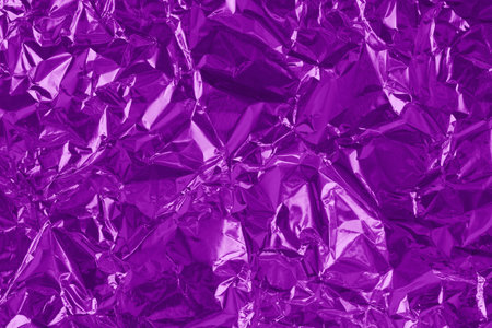 Shiny purple foil texture background, pattern of violet wrapping paper with crumpled and wavy.