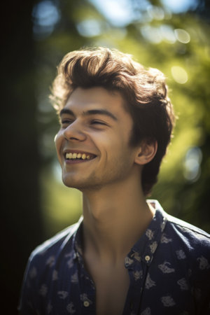 Smiling Under the Light of Divine Love. Portrait of an elderly African American man in a park at sunset