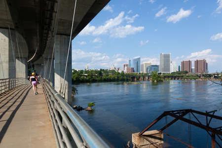 RICHMOND, VIRGINIA - August 8, 2019: a footbridge crosses the James River canal going to Brown's Island
