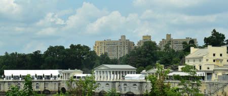 City skyscrapers on Virginia side of Potomac River. View on office buildings from Georgetown Park, Washington DC.