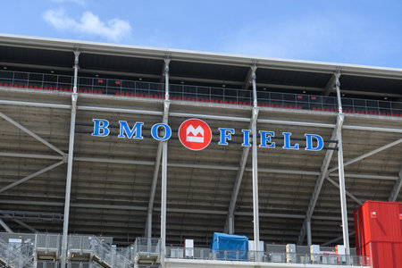 Toronto, ON, Canada – April 17, 20234: The logo and brand sign of BMO Field Sport Arena
