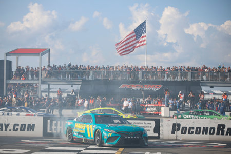 NASCAR Cup Series Driver, Denny Hamlin (11) wins the HighPoint.com 400 at the Pocono Raceway in Long Pond PA.