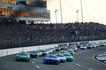 NASCAR Cup Series driver, Kyle Larson leads the field for the Toyota Owners 400 in Richmond, VA, USA.