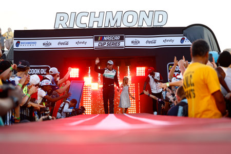 NASCAR Cup Series driver, Denny Hamlin wins the Toyota Owners 400 in Richmond, VA, USA.
