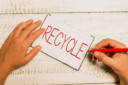 Text sign showing Recycle. Word for ocess of converting waste materials into new materials and objects Brainstorming Problems And Solutions Asking Relevant Questions