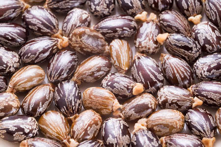 Ayurvedic castor oil seeds, Ricinus communis, Chemical Components - Ricine, poisonus. Used medicinally. Satara, Maharashtra, India