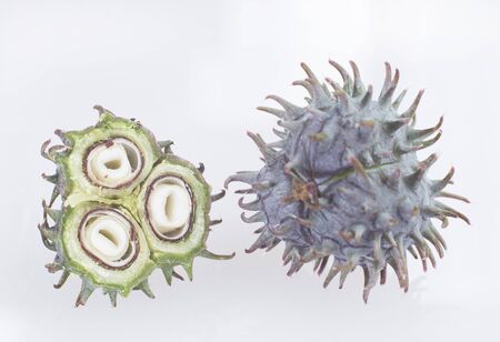 Castor branch fruits on a white background.