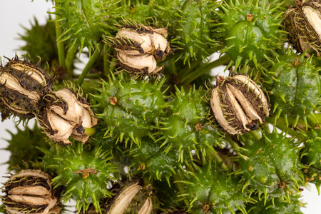 Castor-Oil Plant (Ricinus communis). Infructescence Detail Closeup