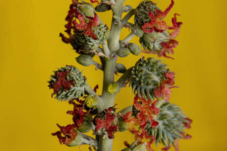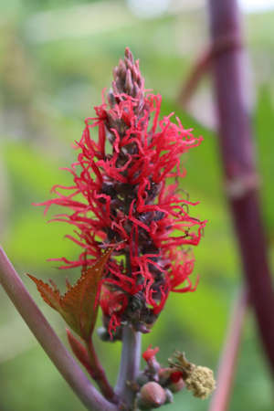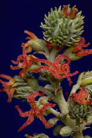 A closeup of Castor Bean flower, castor oil plant