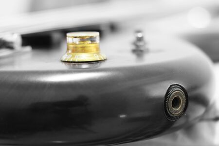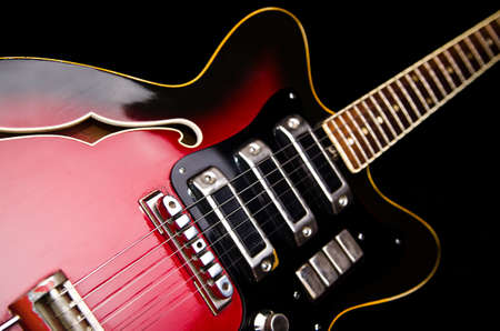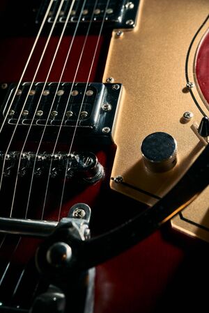 Old jazz electric guitar. Close-up. Background for music festivals, concerts. Musical education. Concert concept. Musical instruments