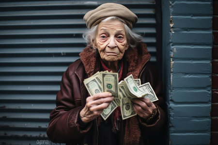 Empty wallet in the hands of an elderly man. Concept of retirement poverty. Generative AI