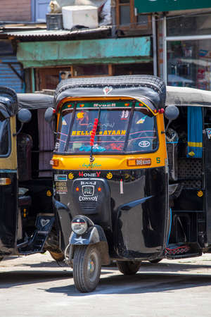 Srinagar, India - july 03, 2015: Auto rickshaw taxis on a road in Srinagar, Jammu and Kashmir state, India