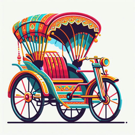 Colorful hand drawn vector illustration of a traditional rickshaw.