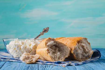 Fresh white cheese and bread.