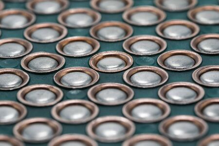 Metal surface with round holes. Background. Pattern.