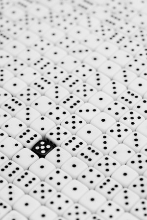 a black die in a lot of white dice