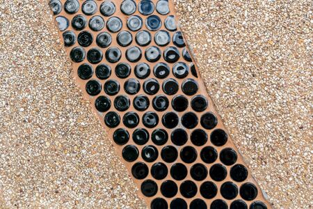 Close up image of Cement with small gravel texture and black ceramic