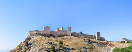 summer panoramic view of genoese fortress in Sudak in Crimea