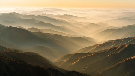 A stunning mountain landscape showcasing layered hills under soft morning light, ideal for those seeking tranquility in nature and breathtaking outdoor views.