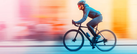 A cyclist in motion captures the thrill of speed on a vibrant city background, showcasing both fitness and urban adventure.