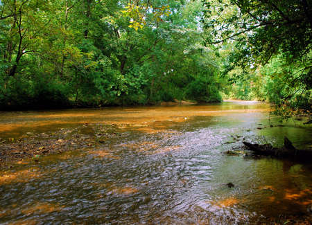 River in the forest at sunset. Beautiful natural landscape with river and trees