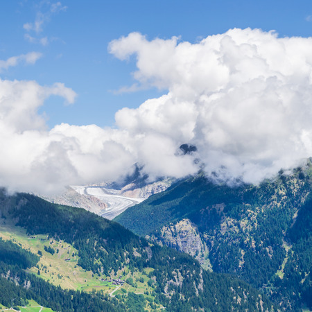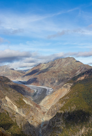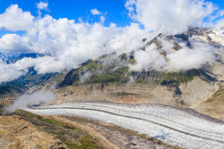 Scenic view on Great Aletsch Glacier in Valais canton, Switzerland