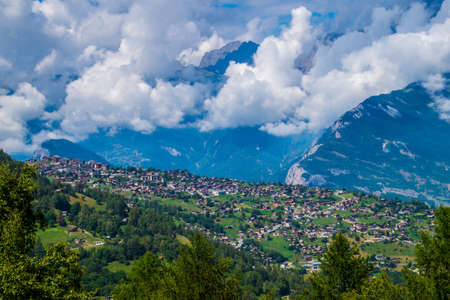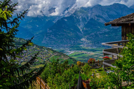 View of the Bernese Alps from the village Torrentalp, Switzerland