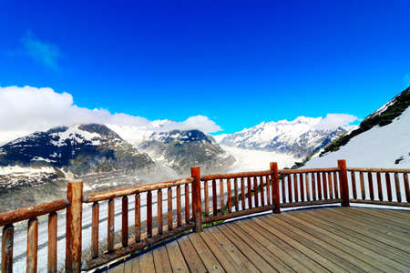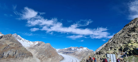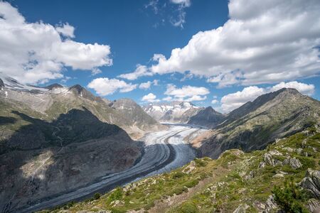 Beautiful view of the Great Aletsch Glacier in Valais canton, Switzerland. View from Eggishorn