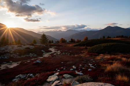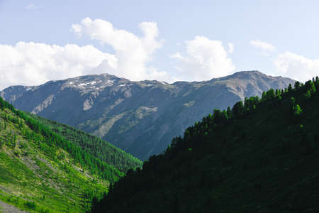 Mountains in the autumn at sunset. Russia, Siberia, Altai mountains.