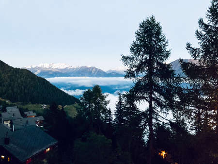 The View to the Cloud Cover in the Swiss Alps with Tins
