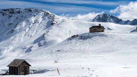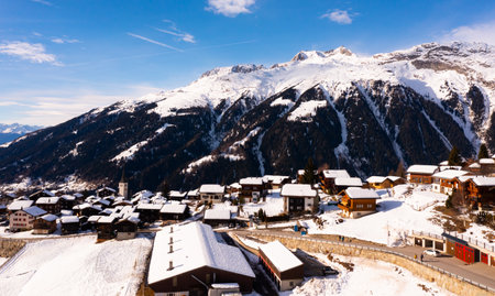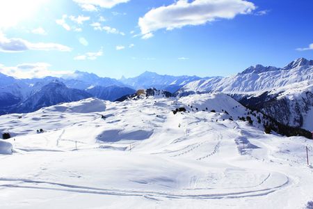Beautiful winter weather on ski resort in high mountains, Switzerland