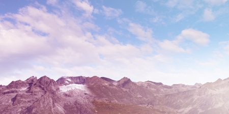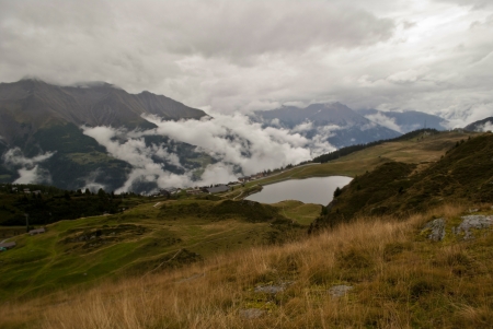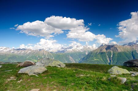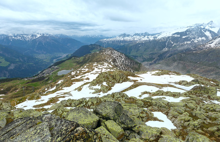 Mountain Bettmeralp (Switzerland) summer top cloudy view.