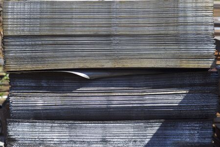 Sheet metal is in bundles in the warehouse, Russia