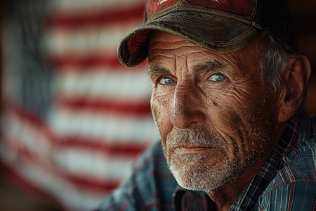 Wrinkled Face Of American Hero Portrait Of A Solemn Veteran Contemplating Veterans Day