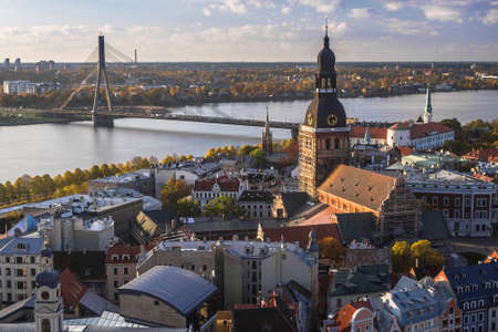 Autumn view of the city of Riga at sunset. View from the city