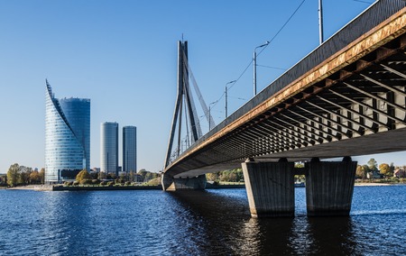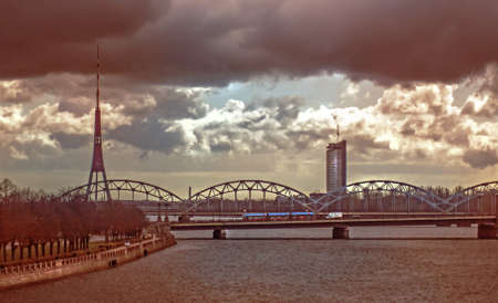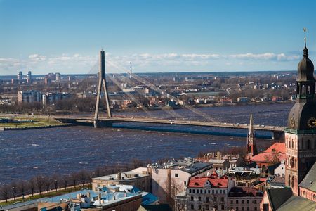 View on a bridge over Dvina in Riga,Latvia from Peter tower