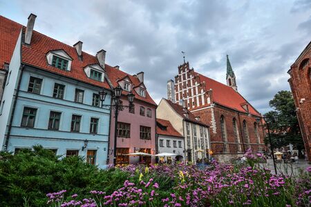 Riga, Latvia - August 23, 2017 : Beautiful view on old colorful buildings and streets of Riga, Latvia. Architecture in Riga city center.