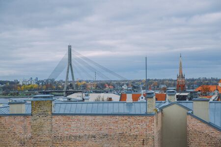 City Riga, Latvia. Old town center, bridge and architecture. Travel photo 2018. Capital of Latvia. Old and silent town.