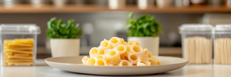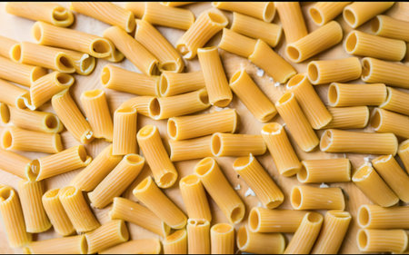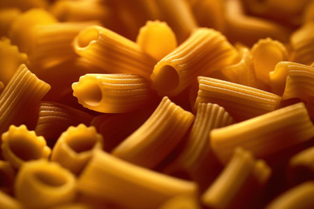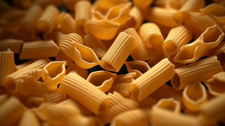 Macro Shot of Dry Ridged Pasta Tubes. Generative AI