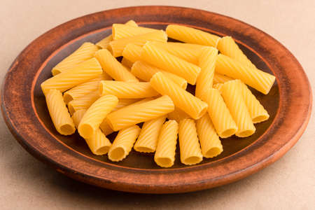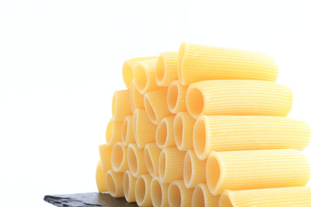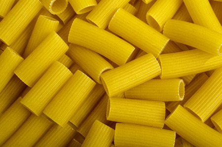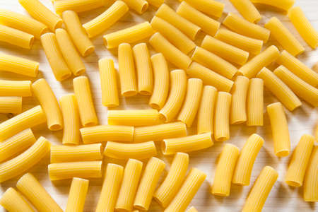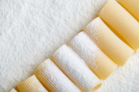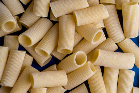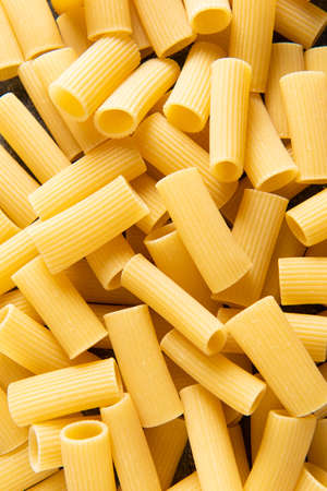 close up of italian paccheri pasta raw uncooked food background