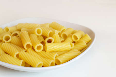 rigatoni pasta italian food on plate closeup isolated on table