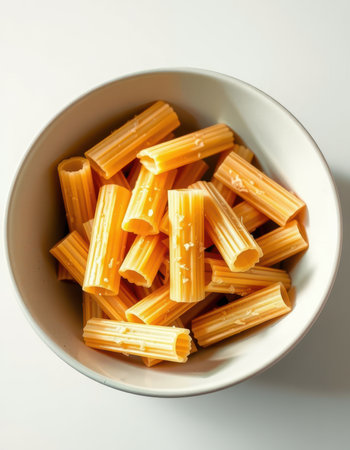 Dry Rigatoni Pasta in a Bowl, side view.