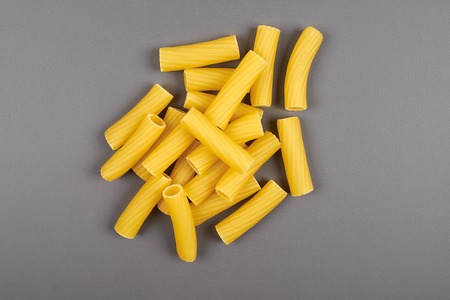 Rigatoni italian pasta isolated on grey background