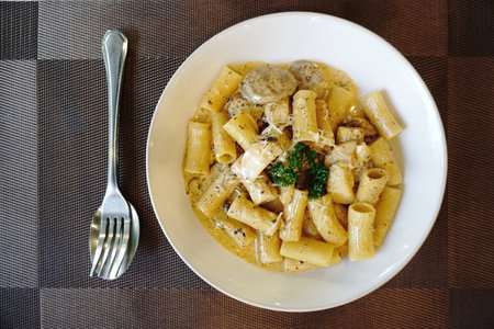 Pasta with mushroom and cream sauce in plate - Italian food style
