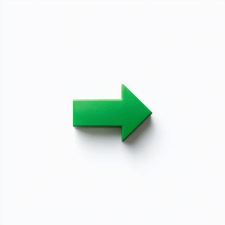 A vibrant green arrow symbol placed on a clean white background, representing direction, guidance, and navigation in design and communication contexts.