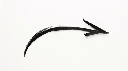 Black arrow painted with watercolor on white background as right direction, navigation element, minimalist art symbol