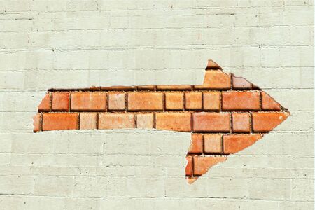 Arrow made of blocks on a gray background. Set a course. leadership skills. Consolidation and formation. Direction of movement, pointer where to go
